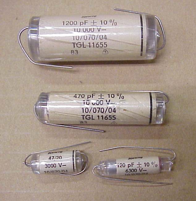 | Endlich ist die neue Serie Hochspannungskondensatoren aus dem Hause Fischer und Tausche lieferbar. | Finally we can supply true high voltage caps of current production, made by F&T | Enfin nous pouvons fournisser les condensateurs à haute tension d´une production courante de F&T. | ||||||