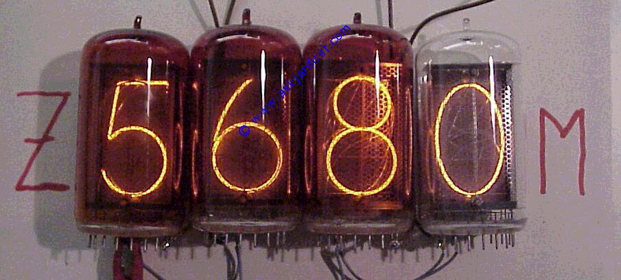 infok | Z 566 M | D | no | Schöne, mittelgroße (30mm-Ziffern) Nixieröhre. Claus Urbach vertreibt einen passenden Bausatz für eine Uhr. Mehr Infos hier | 1" digit-size Nixies. Claus´s Clock kit page, nice photos and a DIY Clockkit. | Nixie | call | a.A. |
